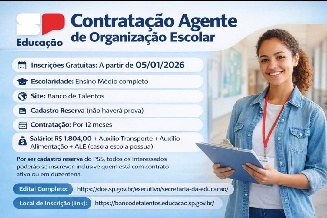 - Edital completo: https://doe.sp.gov.br/executivo/secretaria-da-educacao/edital-de-26-12-2025-banco-de-talentos-agente-de-organizacao-escolar-aoe